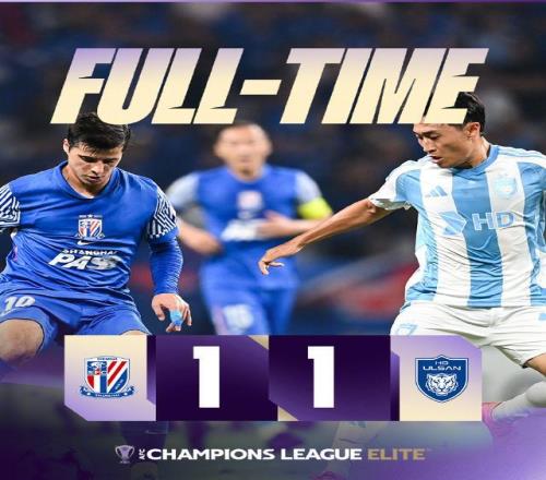 上海申花本轮主场1比1平蔚山HD队。